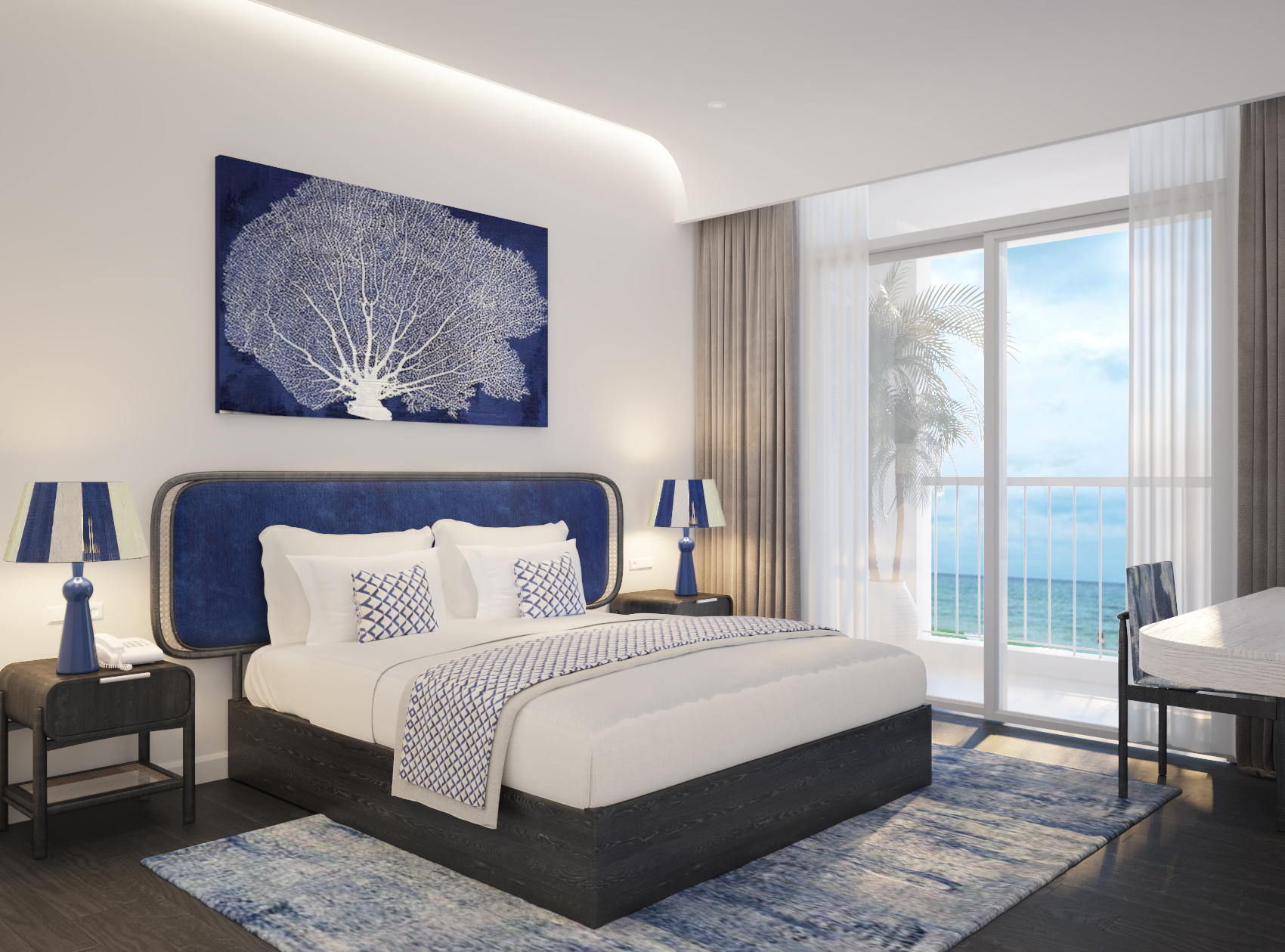 • Các bức tranh tường được chăm chút, đưa những bức tranh có hơi hướng biển như san hô hay các sinh vật sống dưới biển để tạo cảm giác như đang được hòa mình với thiên nhiên.